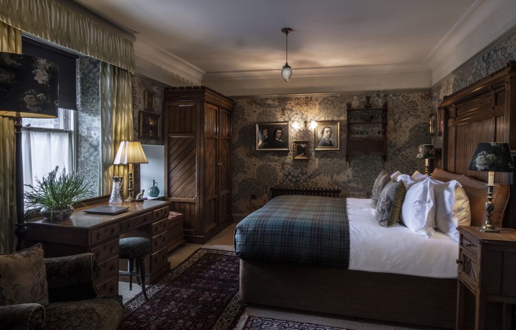 “Mad, bad, and dangerous to know”, the Romantic poet Lord Byron spent much of his childhood in Royal Deeside, most famously inspiring his poem Lachin y Gair, or Dark Lochnagar. The Lord Byron room evokes the flamboyant complexity of this early celebrity, from wallpaper patterned with thistles and daffodils to a custom writing desk and dandy’s coat.